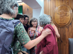 Sonríe y parece estar en un paseo constante, jamas se incomoda y disfruta del reconocimiento de la gente. No actúa su humildad, en verdad le parece excesivo el encanto que despierta.Hay mujeres que la aplauden y la admiran a cada lugar donde le toca dar una charla o donde es invitada como referente de lo que significa ser mujer. De Tilcara a EEUU y de ahí a Chile, a acompañar la asunción del presidente Boric, un galardón entre ciudades de cemento, que la limita un poco, se nota la preferencia por aquellos otros, mas cerca a su sensibilidad.